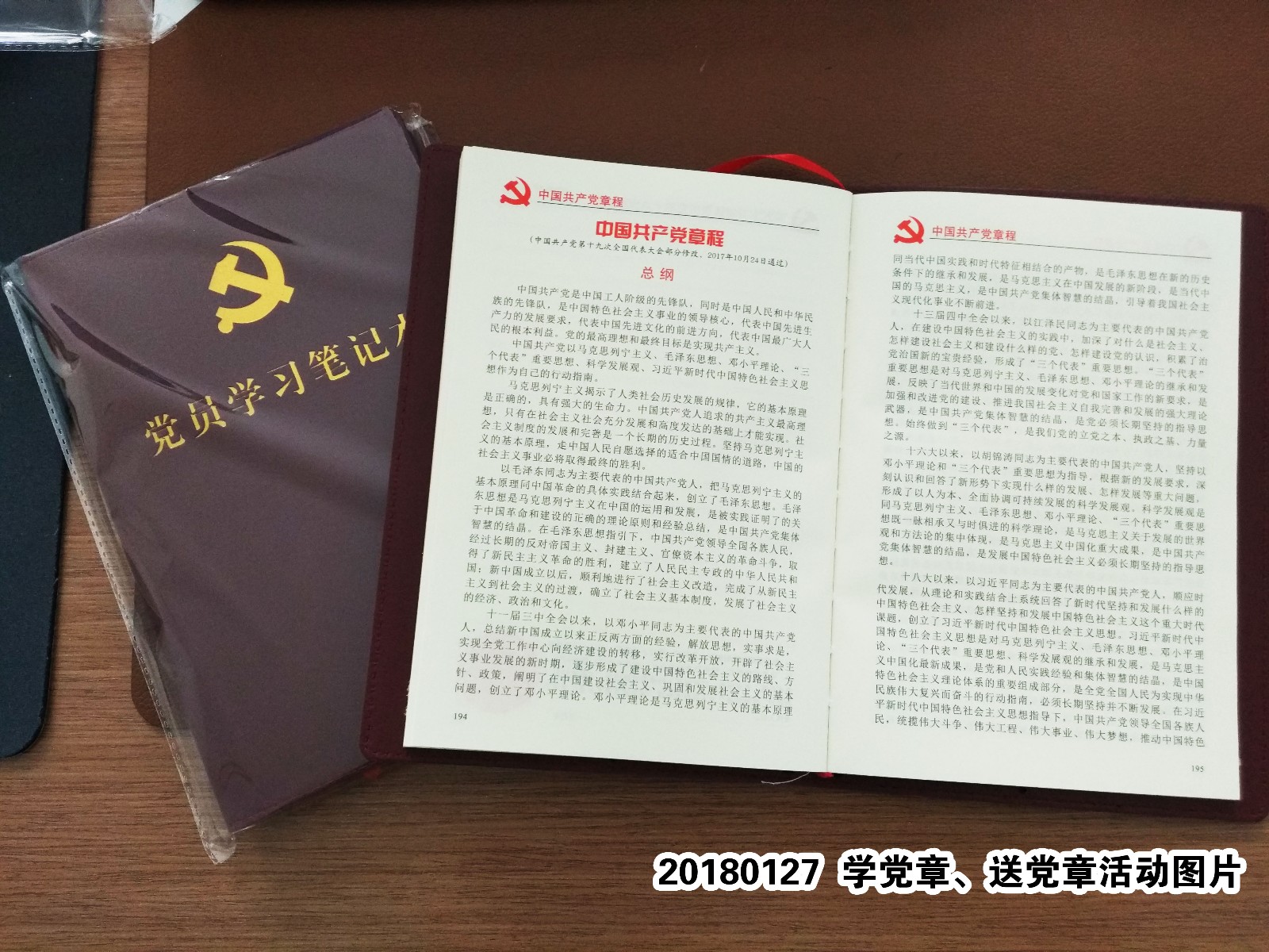 2018年1月27日,公司黨支部舉行“學黨章、送黨章”活動,黨支部書記親自將黨章發(fā)到每一位黨員手中,并對黨章進行了宣講解讀,并在活動中帶領黨支部成員學習黨章修改的13個要點。